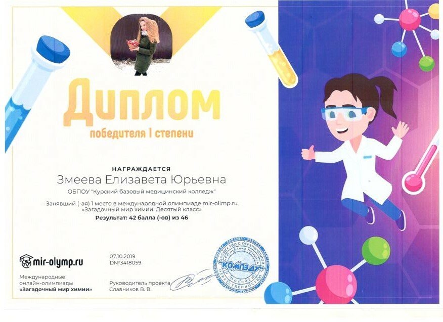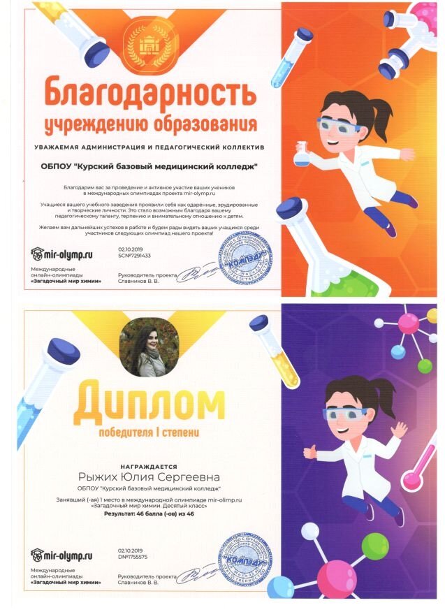 Олимпиада по химии — наши победы! | КУРСКИЙ БАЗОВЫЙ МЕДИЦИНСКИЙ КОЛЛЕДЖ